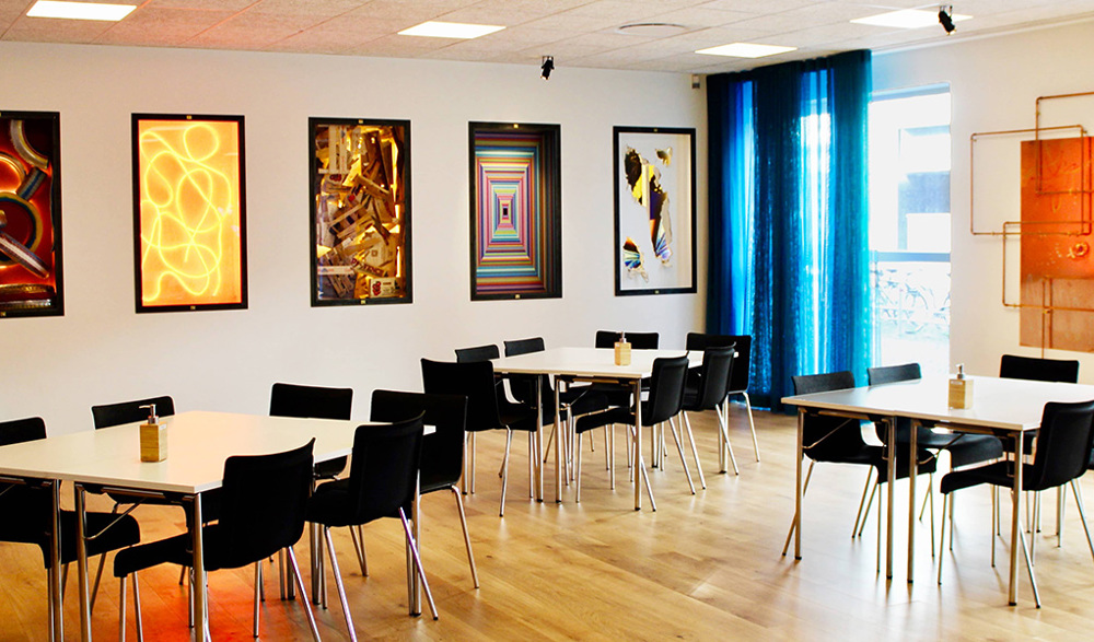 The whole conference center is filled with creative MBK-solutions, a lot of art and fun interiør design. Go explore the art in the breaks and enjoy the fact that no two rooms are alike - not even the bathrooms.