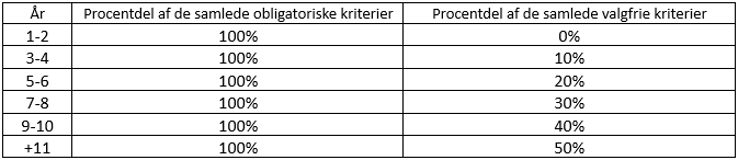 Overgangsperioden til de nye kriterier