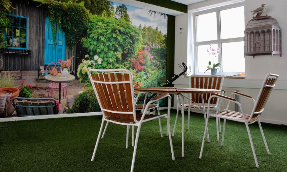 The beautiful rooftop terrasse can be accessed during the breaks. It is a peaceful oasis with lots of creative inventions.